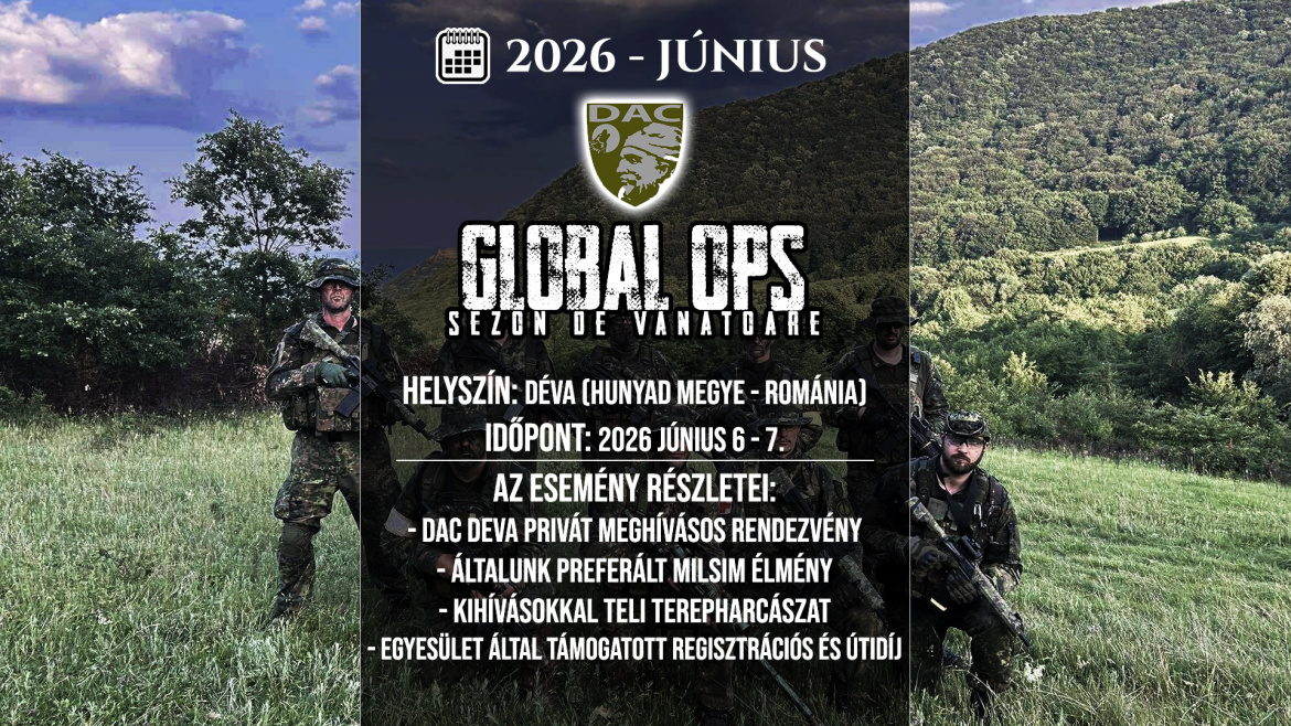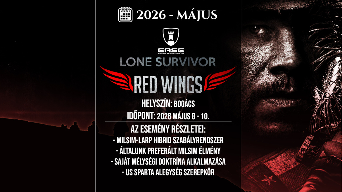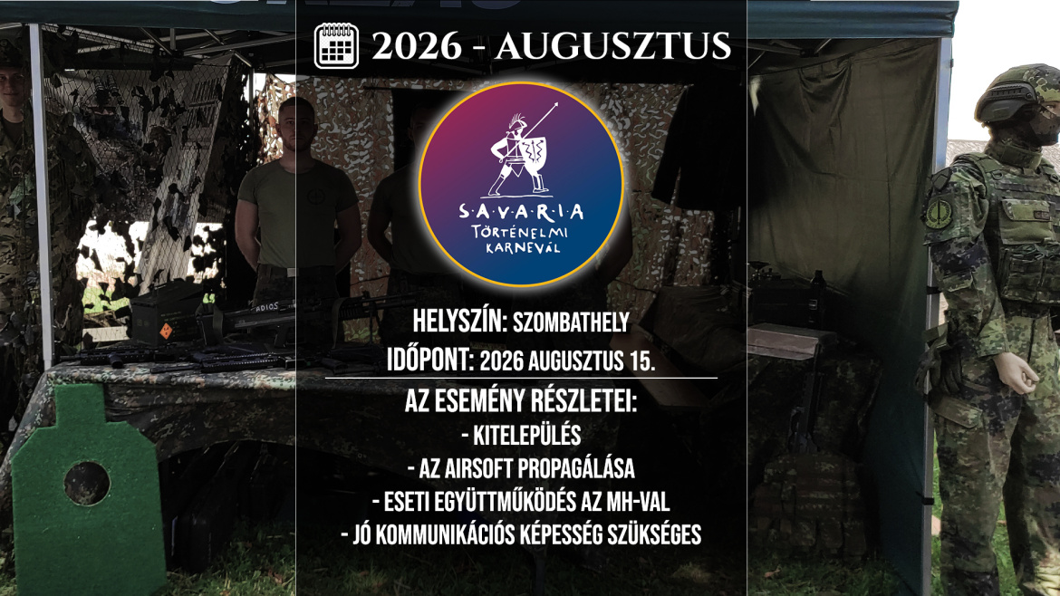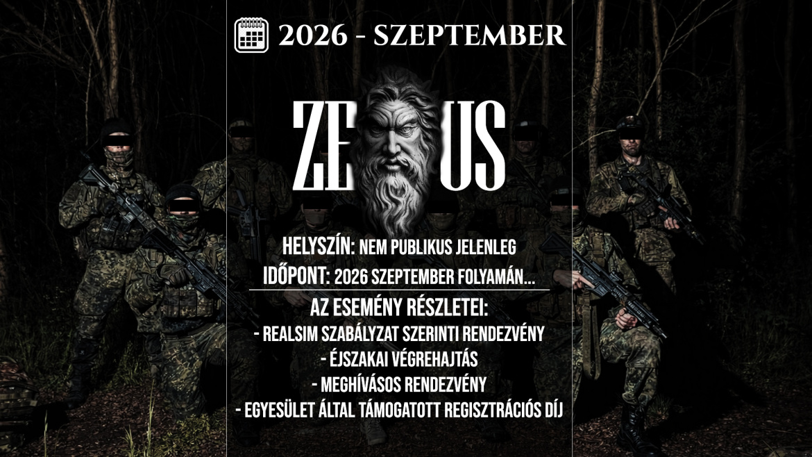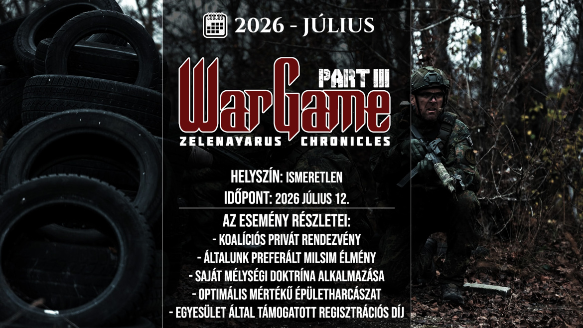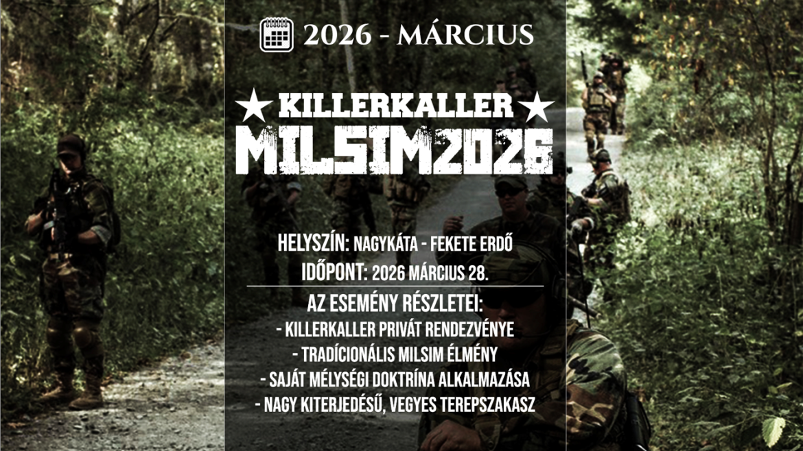 | ● 2026.02.22. Vasárnap ● VÁRAD22 EÜ. Gyakorlat és játék | ● 2026.03.08. Vasárnap ● WarGame BARSZ106 ● 2026.03.20. Péntek ● Serenissima Patrol Competition IV. (IT) ● 2026.03.28. Szombat ● MILSIM 2026 |