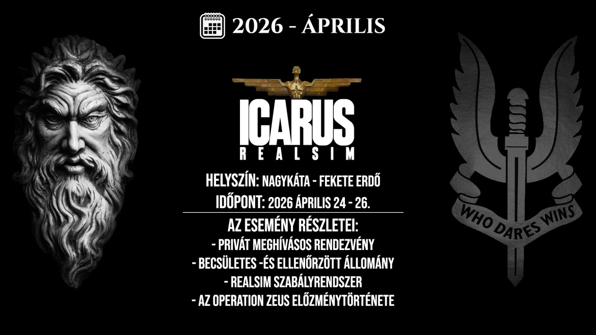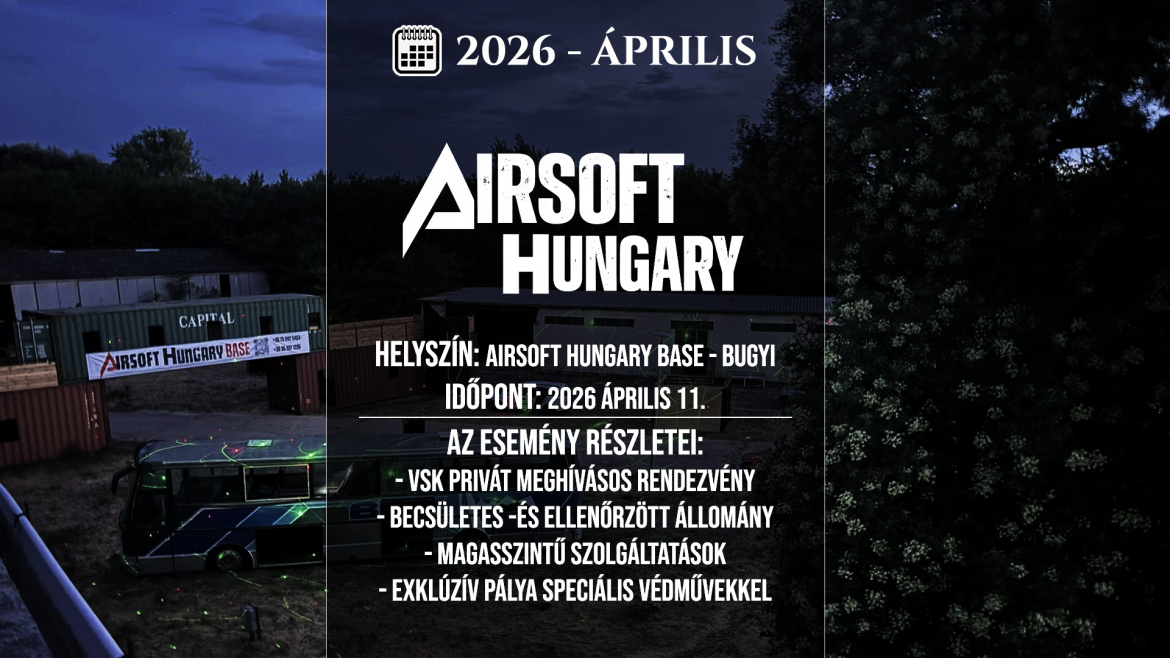 | ● 2026.04.18. Szombat ● VSK Skirmish ● 2026.04.24 - 26. Péntek - Vasárnap ● ICARUS Realsim | ● 2026.05.08 - 10. Péntek - Vasárnap ● ORW 2026 ● 2026.05.09. Szombat ● VSK csapatépítő | ● 2026.06.06 - 07. Szombat - Vasárnap ●