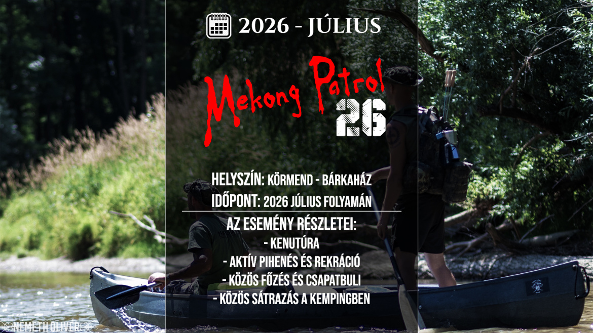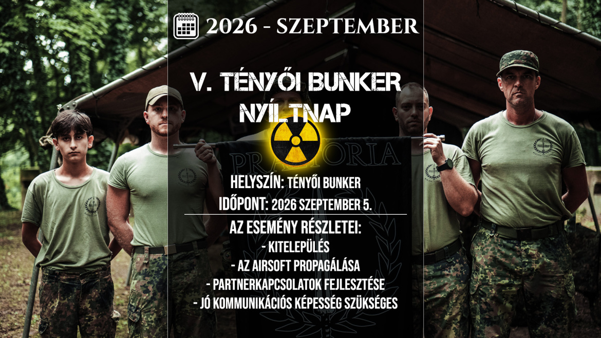 | ● 2026.07.12. Vasárnap ● WarGame III. ● 2026 július hónap tetszőleges szombatja ● Mekong Patrol 26 | ● 2026.08.15. Szombat ● Savaria Történelmi Karnevál ● 2026.08.21 - 23 Péntek - Vasárnap ● BW 2026 (CZ) | ● 2026.09.05. Szombat ● V. Tényői Bunker Nyíltnap ● 2026.09.?. Szombat ● Operation Zeus III. |